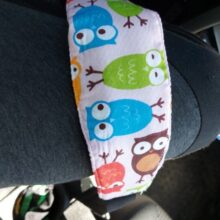 Our Baby Car Seat Head Support Band features an elastic band with a buckle and adjustable length strap. All you have to do is strap around your stroller or car seat where your little one’s forehead is so when he falls asleep, his head will stay upright.